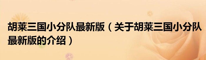 胡莱三国小分队最新版(关于胡莱三国小分队最新版的介绍)