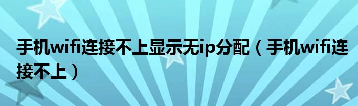 大家好,小晋来为大家解答以下问题,关于手机wifi连接不上显示无ip分配,手机wifi连接不上很多人还不知道,今天让我们一起来看看吧!