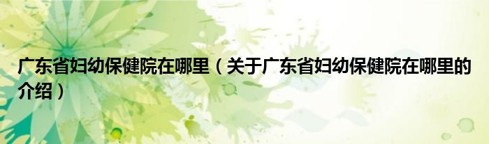 广东省妇幼保健院在哪里(关于广东省妇幼保健院在哪里的介绍)