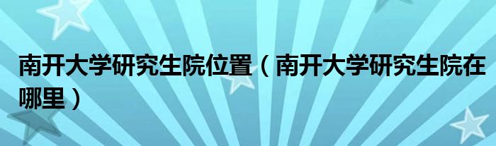 大家好,小晋来为大家解答以下问题,关于南开大学研究生院位置,南开大学研究生院在哪里很多人还不知道,今天让我们一起来看看吧!