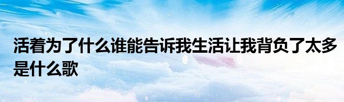 关于活着为了什么谁能告诉我生活让我背负了太多是什么歌这个很多人还不知道,今天菲菲来为大家解答以上的问题,现在让我们一起来看看吧!