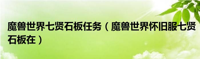 关于魔兽世界七贤石板任务,魔兽世界怀旧服七贤石板在这个很多人还不知道,今天菲菲来为大家解答以上的问题,现在让我们一起来看看吧!