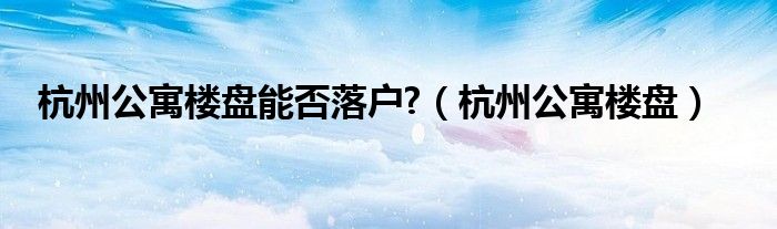 杭州公寓楼盘能否落户?(杭州公寓楼盘)