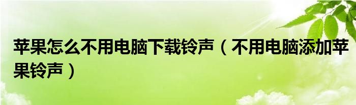 苹果怎么不用电脑下载铃声(不用电脑添加苹果铃声)