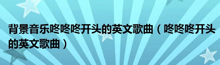 关于背景音乐咚咚咚开头的英文歌曲,咚咚咚开头的英文歌曲这个很多人还不知道,今天菲菲来为大家解答以上的问题,现在让我们一起来看看吧!
