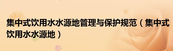 关于集中式饮用水水源地管理与保护规范,集中式饮用水水源地这个很多人还不知道,今天菲菲来为大家解答以上的问题,现在让我们一起来看看吧!