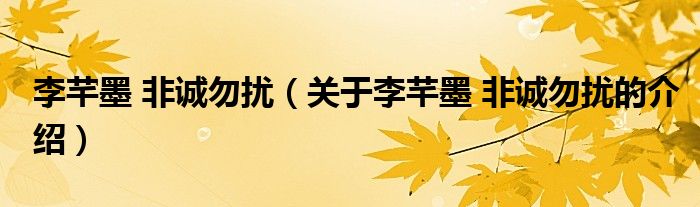 李芊墨非诚勿扰(关于李芊墨非诚勿扰的介绍)