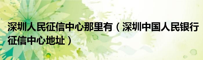 关于深圳人民征信中心那里有,深圳中国人民银行征信中心地址这个很多人还不知道,今天菲菲来为大家解答以上的问题,现在让我们一起来看看吧!