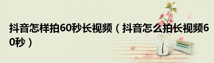 大家好,小晋来为大家解答以下问题,关于抖音怎样拍60秒长视频,抖音怎么拍长视频60秒很多人还不知道,今天让我们一起来看看吧!