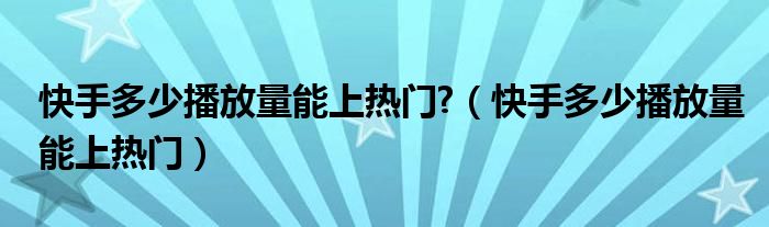大家好,小晋来为大家解答以下问题,关于快手多少播放量能上热门?,快手多少播放量能上热门很多人还不知道,今天让我们一起来看看吧!