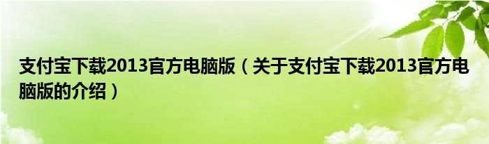 大家好,今天小乐来为大家解答以上的问题。支付宝下载2013官方电脑版,关于支付宝下载2013官方电脑版的介绍很多人还不知道,现在让我们一起来看看吧!