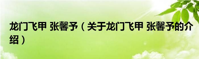 大家好,今天小乐来为大家解答以上的问题。龙门飞甲 张馨予,关于龙门飞甲 张馨予的介绍很多人还不知道,现在让我们一起来看看吧!