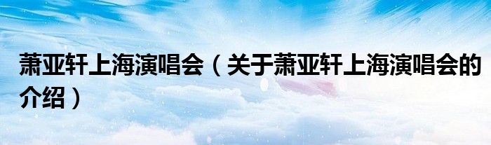 大家好,今天小乐来为大家解答以上的问题。萧亚轩上海演唱会,关于萧亚轩上海演唱会的介绍很多人还不知道,现在让我们一起来看看吧!