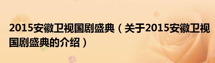 大家好,今天小乐来为大家解答以上的问题。2015安徽卫视国剧盛典,关于2015安徽卫视国剧盛典的介绍很多人还不知道,现在让我们一起来看看吧!