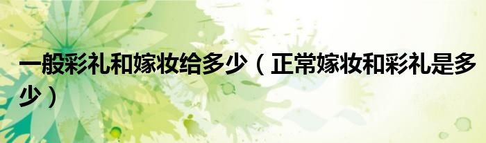 大家好,小晋来为大家解答以下问题,关于一般彩礼和嫁妆给多少,正常嫁妆和彩礼是多少很多人还不知道,今天让我们一起来看看吧!