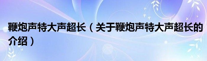 鞭炮声特大声超长(关于鞭炮声特大声超长的介绍)