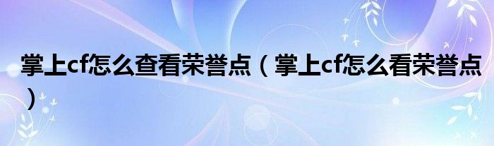 大家好,小晋来为大家解答以下问题,关于掌上cf怎么查看荣誉点,掌上cf怎么看荣誉点很多人还不知道,今天让我们一起来看看吧!