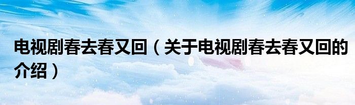 大家好,小都来为大家解答以上的问题。电视剧春去春又回,关于电视剧春去春又回的介绍很多人还不知道,现在让我们一起来看看吧!