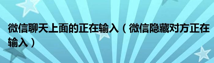微信聊天上面的正在输入(微信隐藏对方正在输入)