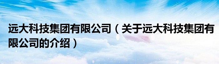 远大科技集团有限公司(关于远大科技集团有限公司的介绍)
