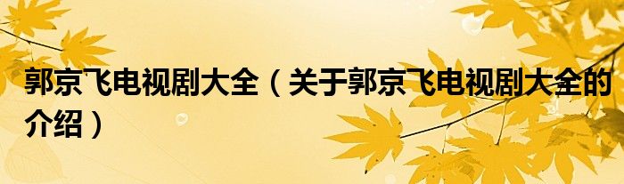 大家好,小都来为大家解答以上的问题。郭京飞电视剧大全,关于郭京飞电视剧大全的介绍很多人还不知道,现在让我们一起来看看吧!