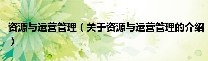 资源与运营管理(关于资源与运营管理的介绍)