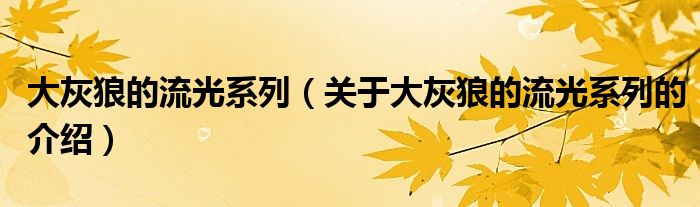大灰狼的流光系列(关于大灰狼的流光系列的介绍)