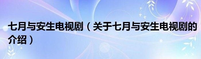 大家好,小都来为大家解答以上的问题。七月与安生电视剧,关于七月与安生电视剧的介绍很多人还不知道,现在让我们一起来看看吧!