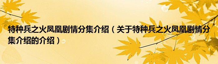 特种兵之火凤凰剧情分集介绍(关于特种兵之火凤凰剧情分集介绍的介绍)