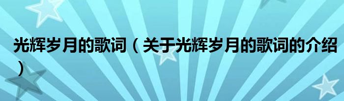 大家好,小都来为大家解答以上的问题。光辉岁月的歌词,关于光辉岁月的歌词的介绍很多人还不知道,现在让我们一起来看看吧!