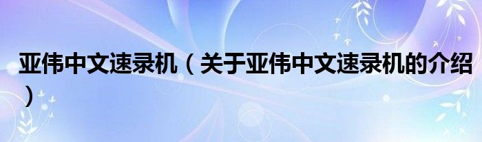 亚伟中文速录机(关于亚伟中文速录机的介绍)