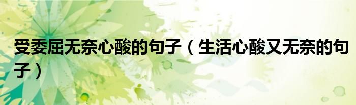 大家好,雨雨来为大家解答以上问题,受委屈无奈心酸的句子,生活心酸又无奈的句子很多人还不知道,现在让我们一起来看看吧!