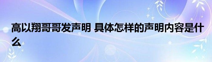 大家好.我是互联百科的羽儿,现在为大家解决以上高以翔哥哥发声明 具体怎样的声明内容是什么的问题.