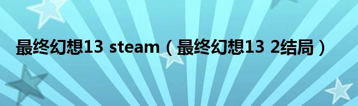 大家好,雨雨来为大家解答以上问题,最终幻想13 steam,最终幻想13 2结局很多人还不知道,现在让我们一起来看看吧!
