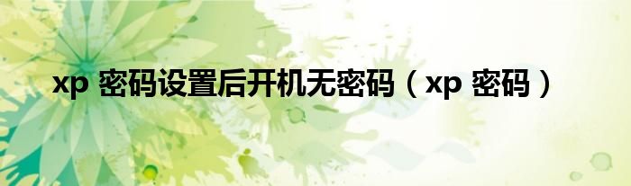 大家好,雨雨来为大家解答以上问题,xp 密码设置后开机无密码,xp 密码很多人还不知道,现在让我们一起来看看吧!