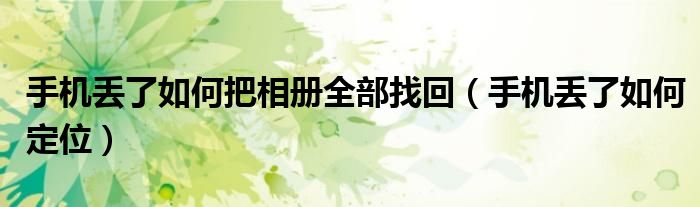 大家好,雨雨来为大家解答以上问题,手机丢了如何把相册全部找回,手机丢了如何定位很多人还不知道,现在让我们一起来看看吧!