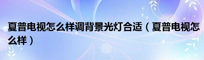 大家好,雨雨来为大家解答以上问题,夏普电视怎么样调背景光灯合适,夏普电视怎么样很多人还不知道,现在让我们一起来看看吧!