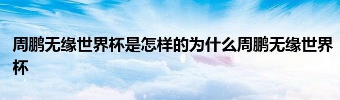 大家好.我是互联百科的羽儿,现在为大家解决以上周鹏无缘世界杯是怎样的为什么周鹏无缘世界杯的问题.