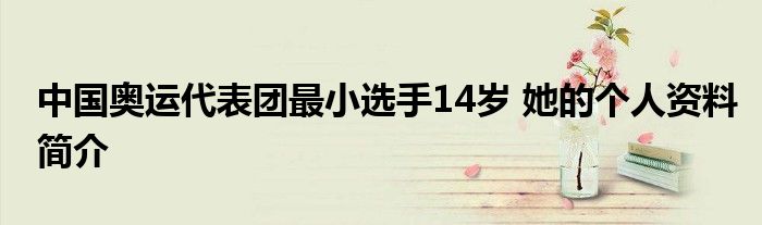 大家好.我是互联百科的羽儿,现在为大家解决以上中国奥运代表团最小选手14岁 她的个人资料简介的问题.