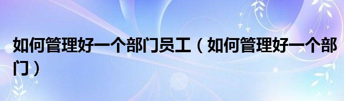 关于如何管理好一个部门员工,如何管理好一个部门这个很多人还不知道,今天菲菲来为大家解答以上的问题,现在让我们一起来看看吧!