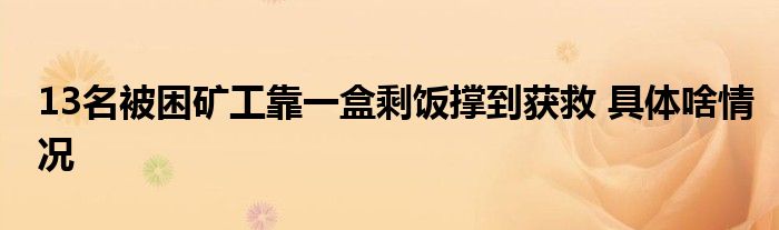 大家好.我是互联百科的羽儿,现在为大家解决以上13名被困矿工靠一盒剩饭撑到获救 具体啥情况的问题.