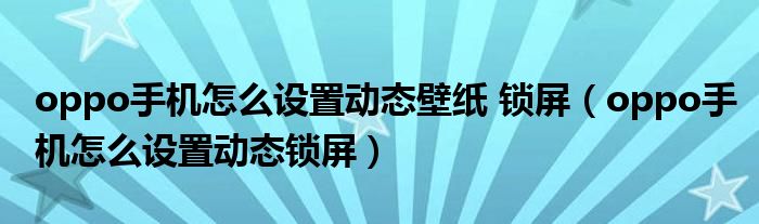 大家好,小晋来为大家解答以下问题,关于oppo手机怎么设置动态壁纸 锁屏,oppo手机怎么设置动态锁屏很多人还不知道,今天让我们一起来看看吧!