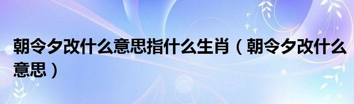 关于朝令夕改什么意思指什么生肖,朝令夕改什么意思这个很多人还不知道,今天菲菲来为大家解答以上的问题,现在让我们一起来看看吧!