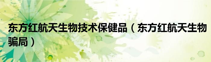 大家好,小晋来为大家解答以下问题,关于东方红航天生物技术保健品,东方红航天生物骗局很多人还不知道,今天让我们一起来看看吧!