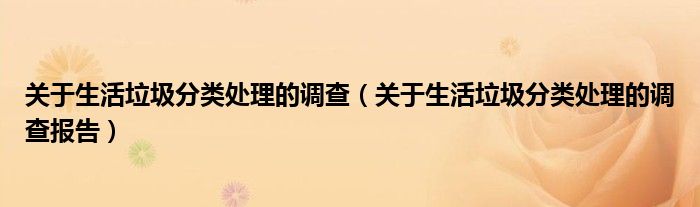 关于关于生活垃圾分类处理的调查,关于生活垃圾分类处理的调查报告这个很多人还不知道,今天菲菲来为大家解答以上的问题,现在让我们一起来看看吧!