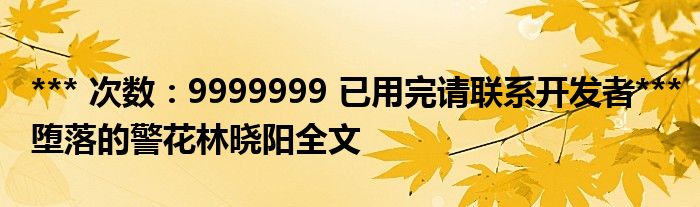 关于*** 次数:9999999 已用完请联系开发者*** 堕落的警花林晓阳全文这个很多人还不知道,今天菲菲来为大家解答以上的问题,现在让我们一起来看看吧!