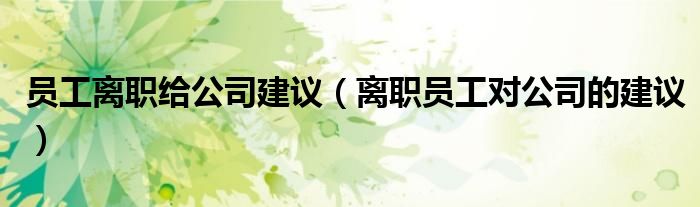 关于员工离职给公司建议,离职员工对公司的建议这个很多人还不知道,今天菲菲来为大家解答以上的问题,现在让我们一起来看看吧!