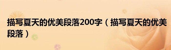 关于描写夏天的优美段落200字,描写夏天的优美段落这个很多人还不知道,今天菲菲来为大家解答以上的问题,现在让我们一起来看看吧!