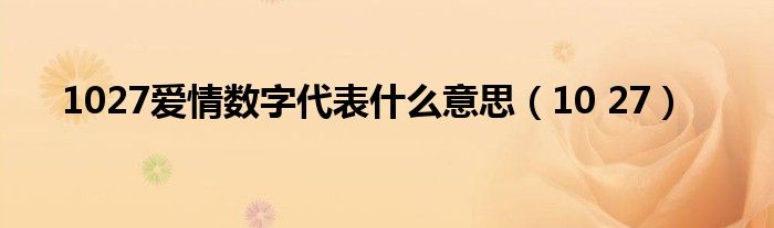 关于1027爱情数字代表什么意思,10 27这个很多人还不知道,今天菲菲来为大家解答以上的问题,现在让我们一起来看看吧!