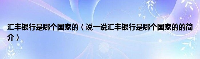 汇丰银行是哪个国家的(说一说汇丰银行是哪个国家的的简介)